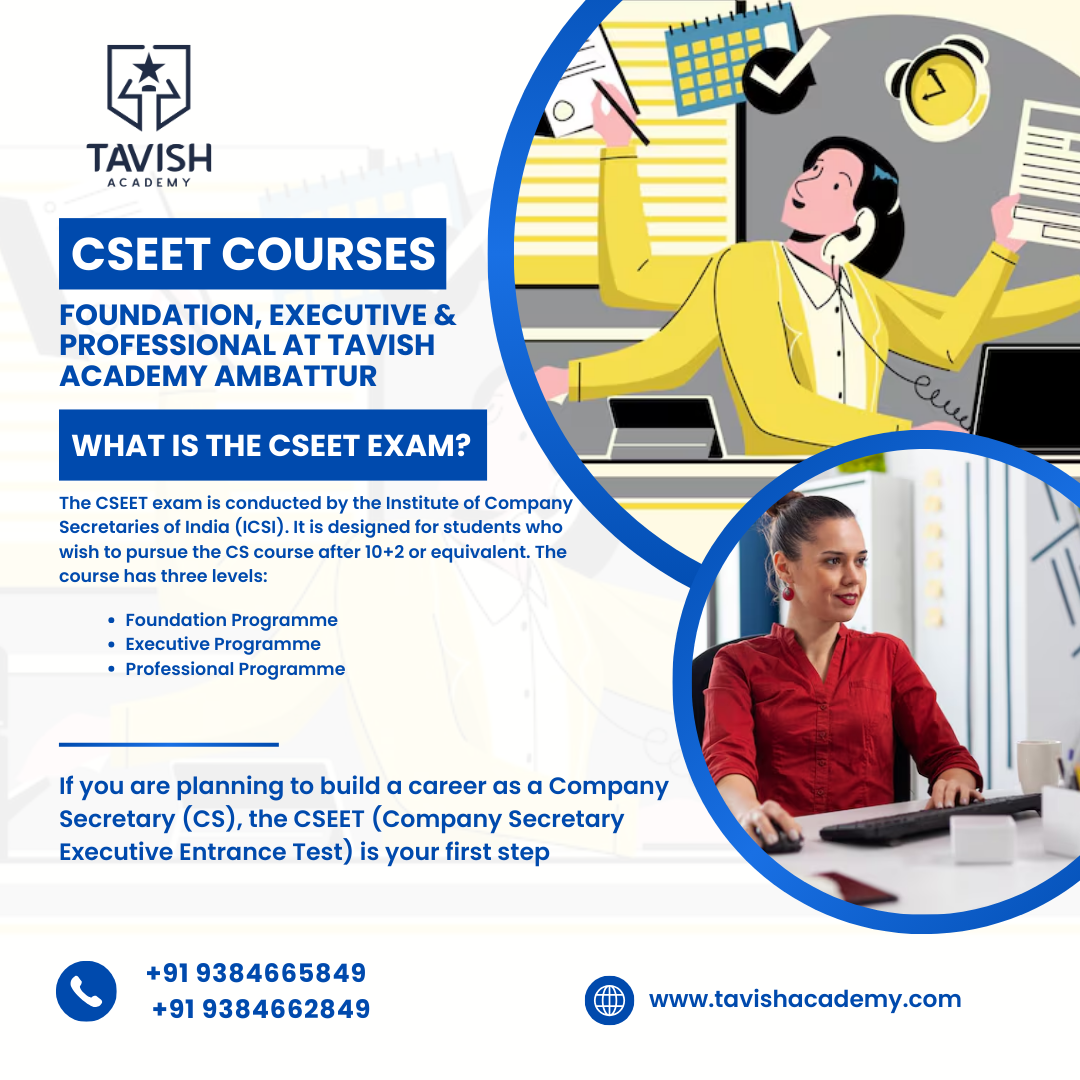 CSEET Courses: If you are planning to build a career as a Company Secretary (CS), the CSEET (Company Secretary Executive Entrance Test) is your first step. This exam opens the gateway to a professional journey filled with opportunities in corporate governance, compliance, and company law. At Tavish Academy, we guide students through every stage of the CS course — from Foundation to Executive and finally the Professional programme.